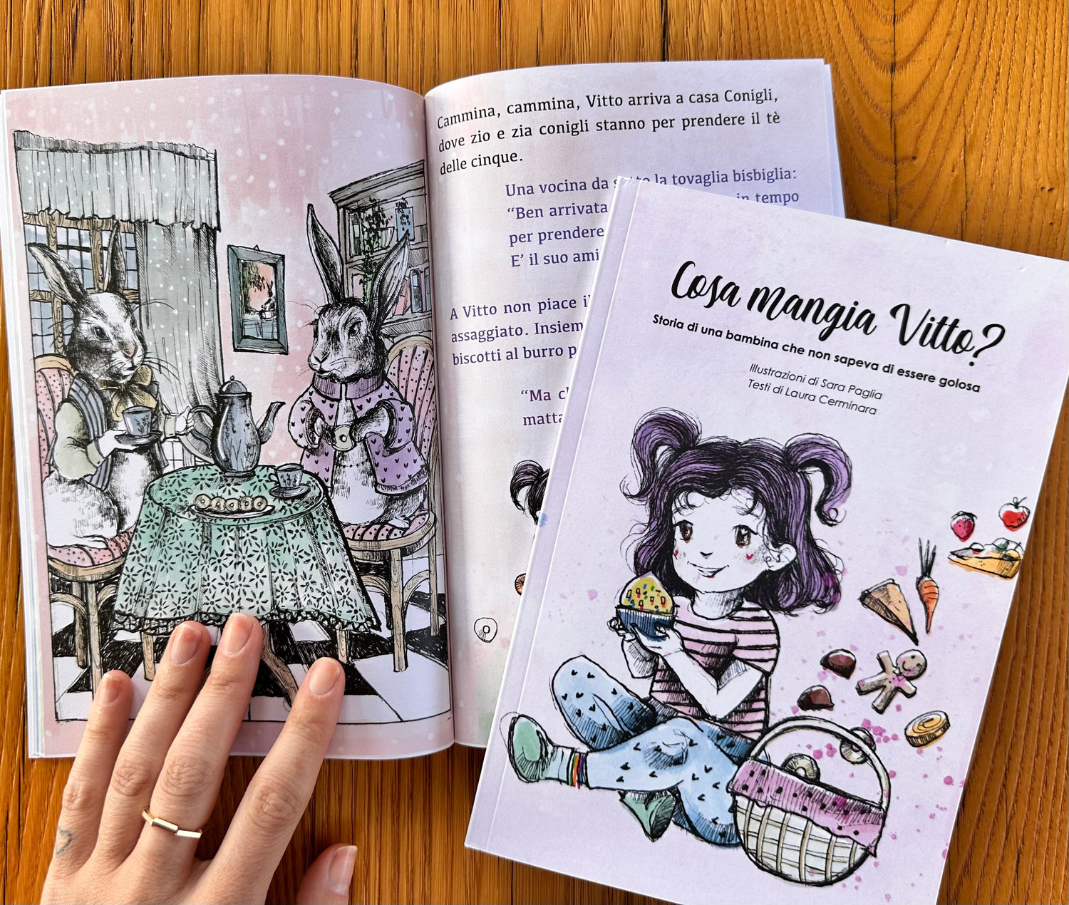 Online on amazon my illustrated book. Created for my niece Vittoria, this is the story of Vitto, a little girl who didn't want to eat . Designed to encourage moments of sharing between children and adults since it includes the recipe book.